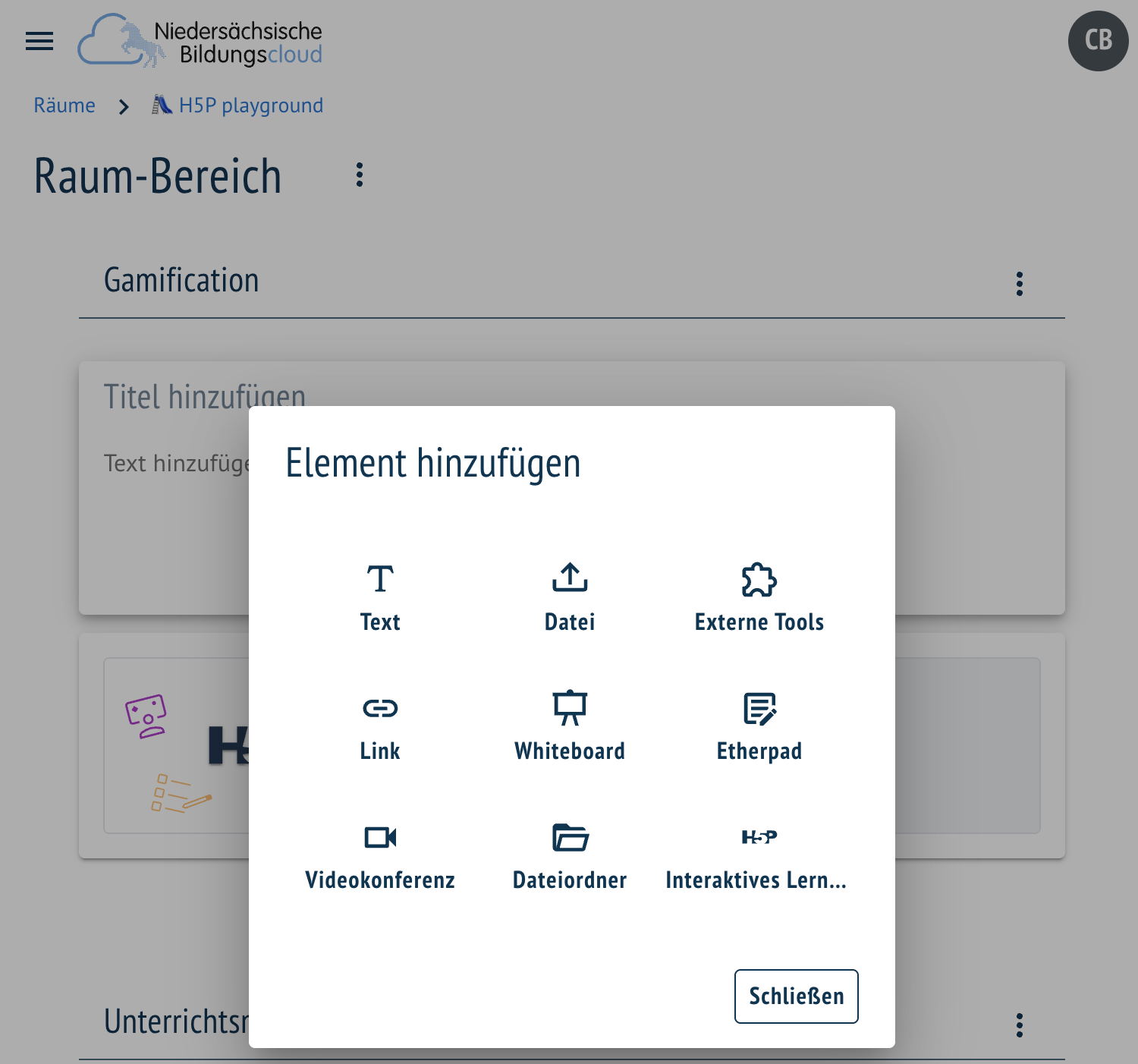 Dieser Raum wurde eigens dafür gestaltet, um neue Lehrkräfte anschaulich in die Funktionen der NBC und ihrer Räume einzuführen. So werden die oben dargestellten Inhalte – von der Einbettung von Materialien bis zur Einrichtung von Berechtigungen - hier exemplarisch erklärt und vertieft.